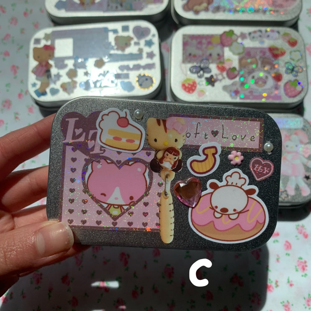 ♡ cases decoed by me, tin trinkets that you can put trinkets, mini things, or anything you want that can fit inside.