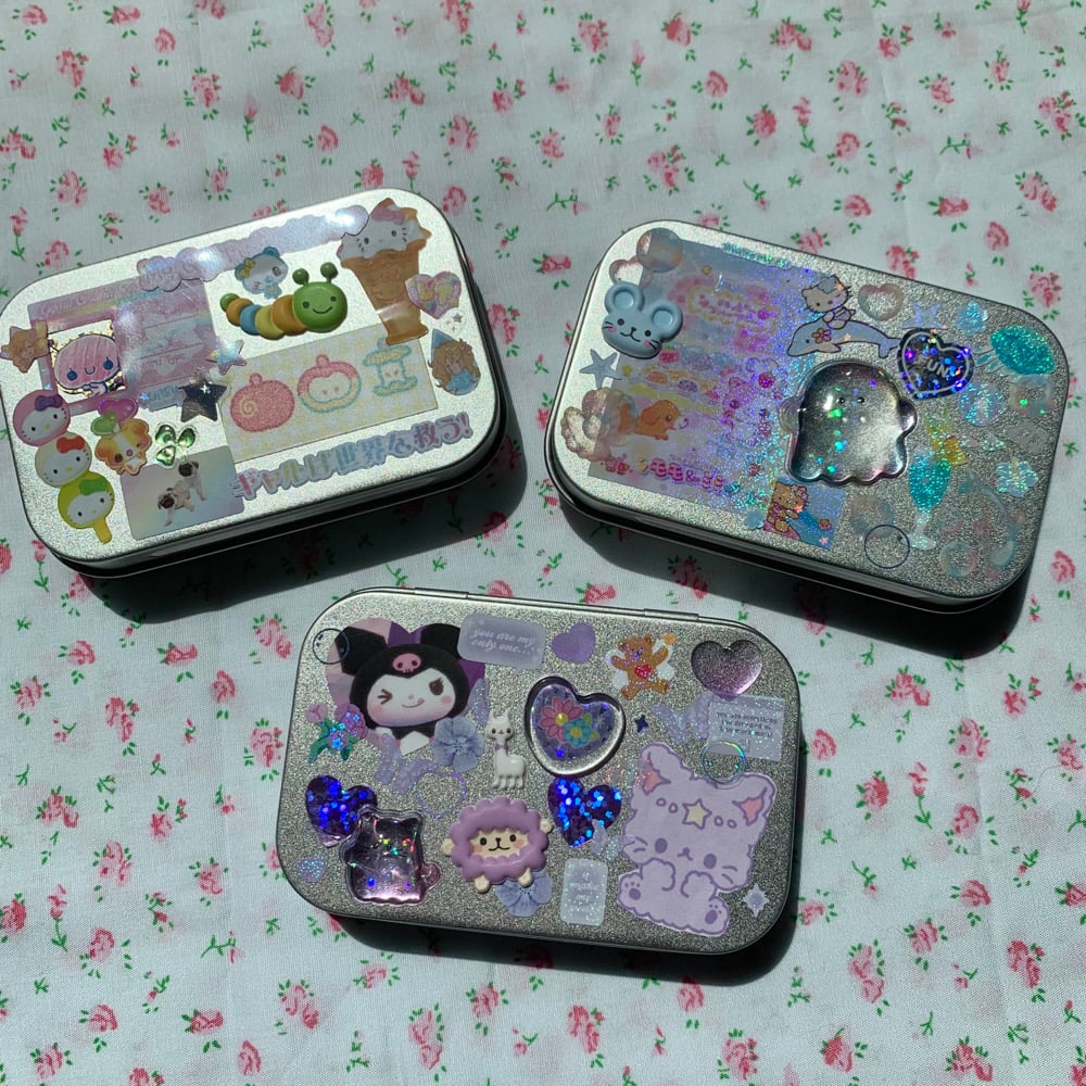 ♡ cases decoed by me, tin trinkets that you can put trinkets, mini things, or anything you want that can fit inside.